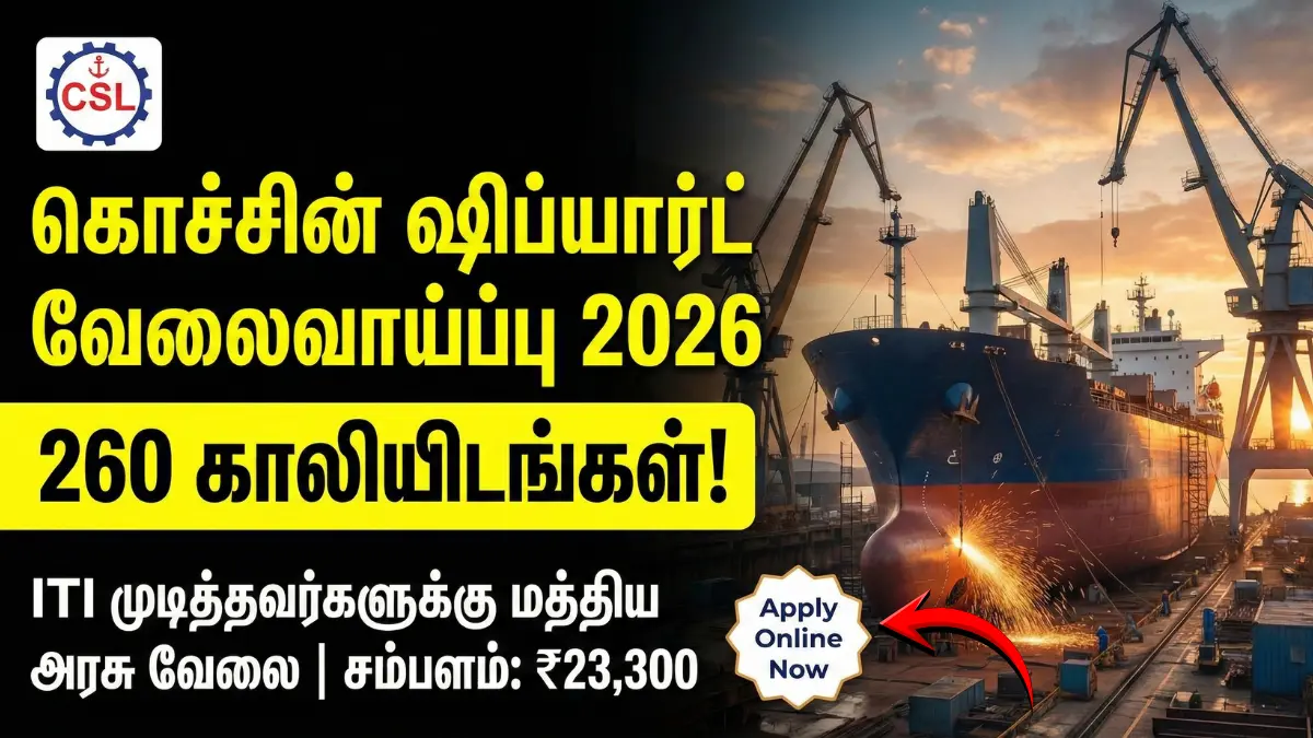 Cochin Shipyard Jobs: மத்திய அரசு நிறுவனமான கொச்சின் ஷிப்யார்ட் லிமிடெட் (Cochin Shipyard Limited) நிறுவனத்தில் வேலை செய்யக் காத்திருப்பவர்களுக்கு ஒரு நற்செய்தி!